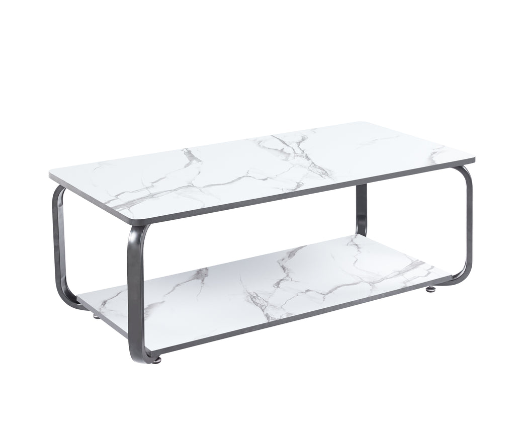 This table's magnificent marble-esque top and gold or black legs make it the centerpiece of any room. Its sheltered shelf below is perfect for displaying your favorite reads, a surefire way to keep your colleagues and clients dazzled and engaged. This coffee table is the ultimate addition!
